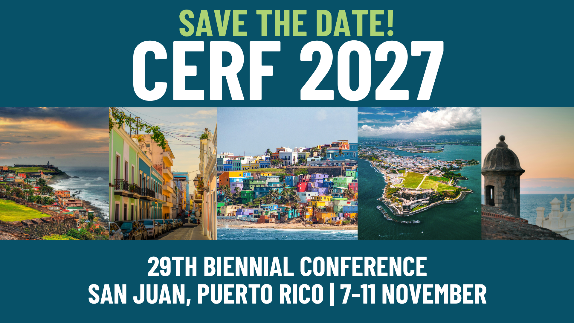 What is CERF?Join CERF Today!Want to receive the latest news and updates from CERF?Use the link below to join our email list and be the first to get relevant updates on coastal and estuarine science, notifications for newly available educational opportunities, information on the CERF Biennial Conference, and more. Get the Latest UpdatesSave the Date for CERF 2027Coastal & Estuarine Journals